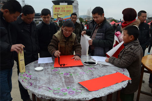 (麻沙活動現(xiàn)場,書法家們免費為村民書寫春聯(lián)) ? ?