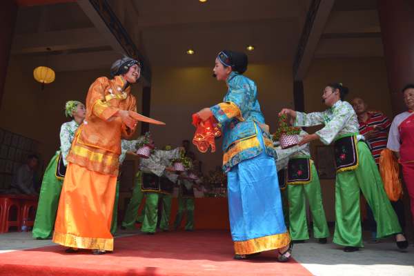 (后畬村民表演的歌舞《采茶燈》) 5月6日,崇雒鄉后畬村周氏舉辦的周敦頤誕辰1000周年紀念慶典上出現了一場別開生面的《采茶燈》歌舞,受到觀眾的歡迎。 茶婆在“鼓樂”的引導下,帶領茶女進行不同形式的穿花,表演登盤山小路、上坡下坡、過獨木橋、采茶等, 姑娘們邊采茶邊歌唱,展現的勞動的艱辛、愉快。 姑娘們的基本舞步稱為“采茶步”,身體挺拔,步法輕盈。歌曲用的是“孟姜女哭長城”的民間小調,優美、生動。茶婆實際上是歌舞的領隊和指揮,她們能隨機應變,插科打諢、妙語連珠、風趣幽默,表演過程精彩紛呈、高潮迭起,引得掌聲陣陣,“攝影師”紛紛拍照。 據說,《菜茶燈》誕生在康乾盛世。茶葉是閩北的支柱產業,后畬村地處武夷山、浦城、水吉三縣的聯接點,是通往東南亞古茶道上的一處驛站,閩北茶葉集散地之一,也是三縣土特產、山貨、手工產品的集貿中心。松政、水吉、浦城的茶葉均集中在后畬,以“武夷巖茶”這一品牌對外銷售,為此,南洋、廣東、閩南等地茶商均到此地采購或路經此地滯留,后畬村此時的經濟文化相當繁榮。為了滿足客商的娛樂需求,弘揚茶文化,后畬村民特意編排《采茶燈》歌舞。由于“采茶燈”扎根民間,貼近生活,特色濃郁,與群眾祈求吉祥如意的民俗緊密結合,所以流傳至今。(周鐘) |
