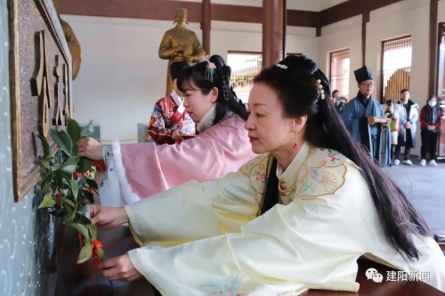 2月5日,由南平市朱子文化研究會指導,我區考亭書院·道南漢服文化館主辦,南平市建陽區旅游發展有限公司、南平市建陽區李國平建本文化傳播有限公司、福建省宋茶美學傳統文化傳播有限公司、南平市漢服文化協會協辦的“敬拜朱子 新春祈福”活動在建陽區考亭書院舉辦。 春節祈福,是國人傳承了千百年的傳統,農歷正月初五更是一個特別重要的祈福日子。為了營造歡樂祥和的節日氛圍,宣傳“福”文化,考亭書院·道南漢服文化館結合傳統節慶活動,以漢服為載體,將朱子文化、漢服文化、民俗文化等優秀傳統文化融匯,舉辦主題為“有‘福’南平穿漢服 勝日尋芳游考亭”的活動,讓傳統文化煥發新的生機。“在弘揚傳統文化的同時,我們為市民提供更多充滿正能量的文化產品,豐富閩北旅游市場。”活動主辦方負責人范成忠老師介紹說。 當天上午,在莊重的鼓樂聲中,身著漢服的市民、游客在司儀的引導下,分列兩隊,緩緩登上臺階,走進考亭書院集成殿,向朱子像敬獻桂枝。接著,眾人從工作人員手中領取祈愿牌,書寫“幸福安康”“國泰民安”“中華復興”等祝福語,掛在集成殿前,為家人朋友祈福,為祖國祈福。 除了“敬拜朱子 新春祈福”這個主要環節,主辦方還為市民、游客安排了穿漢服游園、點茶品韻、建本拓印、投壺競技等活動,尤其受攜帶兒童的游客喜愛。家長們紛紛表示,通過參與活動,孩子不僅接觸了傳統文化、閩北特色文化,還得到了獨特的動手體驗機會。當天,建陽區考亭書院·道南漢服文化館精心打造的傳統弓射箭場也正式向公眾開放。(邱冬勇) |