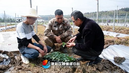 崇雒鄉洛田里農機專業合作社社員涂建明今年承包80多畝土地種植臺灣肉絲瓜,現在正在清理排水溝和移栽絲瓜苗,合作社專業人員前來做技術指導。專業人員告訴涂建明,像這種2-3片真葉,根須是白色的絲瓜苗是最好的,根須是黑的瓜苗便不合格。移栽的時候土要稍微按壓一下,不能太用力,不然容易損壞瓜苗的根須,影響瓜苗生長。