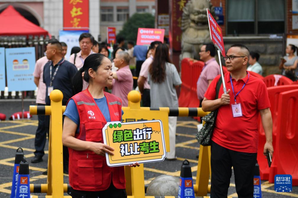 6月8日,志愿者在湖南省天心考區(qū)明德中學(xué)考點(diǎn)外維持秩序。 2025年全國(guó)高考期間,長(zhǎng)沙市天心區(qū)組織青年志愿者,在多個(gè)考點(diǎn)為考生和家長(zhǎng)提供便利服務(wù)。 新華社記者 陳振海 攝