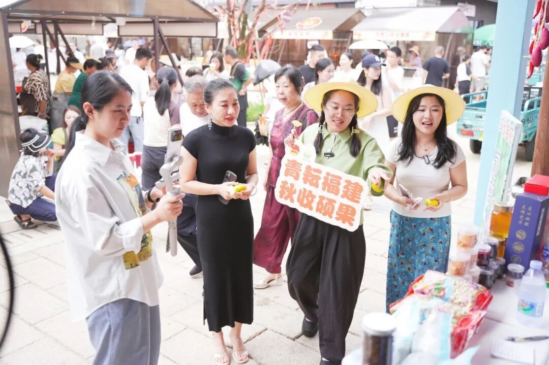 麻陽溪畔的舞臺活動區(qū)精彩不停,馬伏老街上的特色農(nóng)產(chǎn)品展示區(qū),來自南平市十縣(市、區(qū))的特色農(nóng)副產(chǎn)品集中亮相。近年來,建陽積極探索農(nóng)業(yè)高質(zhì)量發(fā)展新路徑,打造以赤橙黃綠黑白紫為主、產(chǎn)供銷一體的“七彩嘉禾”黨建富民品牌,現(xiàn)場展出的建陽小白茶、楊梅干等土特產(chǎn)琳瑯滿目。