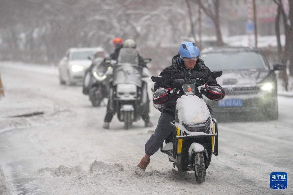 12月23日,騎手冒雪在哈爾濱市區騎行。 12月23日14時,哈爾濱市氣象臺發布暴雪黃色預警信號。 新華社記者 王建威 攝