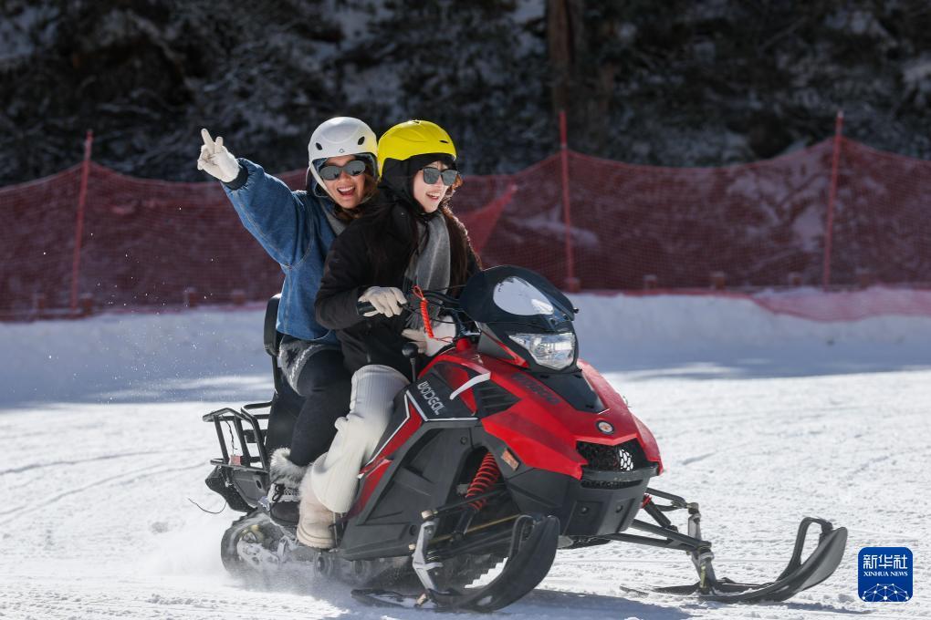 1月5日,在理縣畢棚溝滑雪場(chǎng),兩名游客在玩雪地摩托車(chē)。 1月5日,以“激情冰雪 活力四川”為主題的第十二屆全國(guó)大眾冰雪季(四川分會(huì)場(chǎng))暨四川省第八屆全民健身冰雪季活動(dòng)在阿壩州理縣畢棚溝滑雪場(chǎng)啟幕。啟動(dòng)儀式上的川渝越野滑雪賽、冰雪裝置打卡、冰雪動(dòng)漫、冰雪非遺市集等嘉年華活動(dòng),讓廣大冰雪愛(ài)好者感受四川冰雪的獨(dú)特魅力。 新華社記者 江宏景 攝
